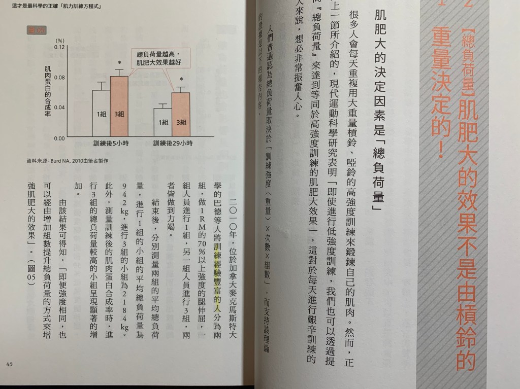 依章節主要分為幾個重點:運動參數的意義、蛋白質的攝取、維持肌力訓練的方式、正確基本動作(臥推、蹲、硬舉),另外針對常見的迷思做解說,例如:
