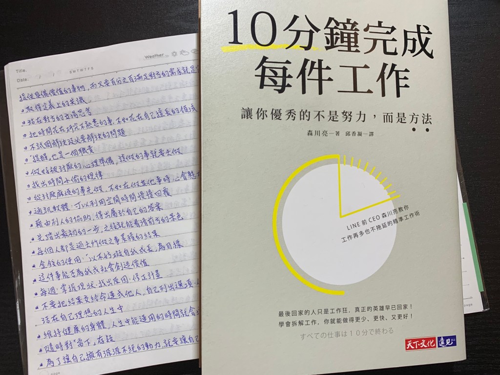 因為目前沒有在大公司或企業工作過,所以前半段讀起來比較沒什麼感覺,但後半段針對個人時間管理、設定長期短期目標、思考自己想要的生活等的議題很有幫助,因為在求學過程中很少有人會提到。作者也提到,別人可能認為自己的做法是因為天生就有高度自制力或有邏輯的個性,才能做到,但實際上,透過每週的回顧,好好思考自己想要成為什麼人、目標是什麼,才可以在時間有限的人生,追求自己理想跟快樂的生活。