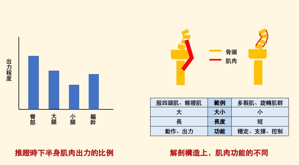 有些肌肉的功能偏向『發力』,而另一部分著重在『穩定』,負責發力的肌肉大多『肌肉較長、較粗』,而負責穩定的肌肉大多『肌肉較短、較細』。