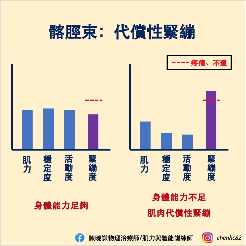 肌也可以想像成髂脛束跟臀部肌群互相幫忙,臀部肌群的能力好,髂脛束就不需要那麼費力,但是當臀部肌群擺爛、裝死,髂脛束就要扛起所有的工作(單腳的穩定性)