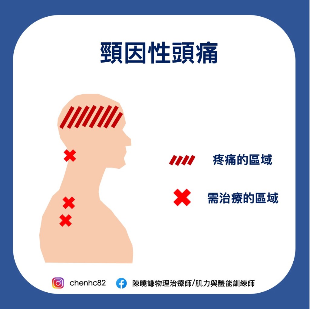 頸因性頭痛,是一種由肩頸部肌肉緊繃、缺氧等造成的頭痛,實際上是頭在痛,但常用的治療方式是做肩頸肌肉的徒手放鬆、伸展等,也不會將電療片貼在頭上。