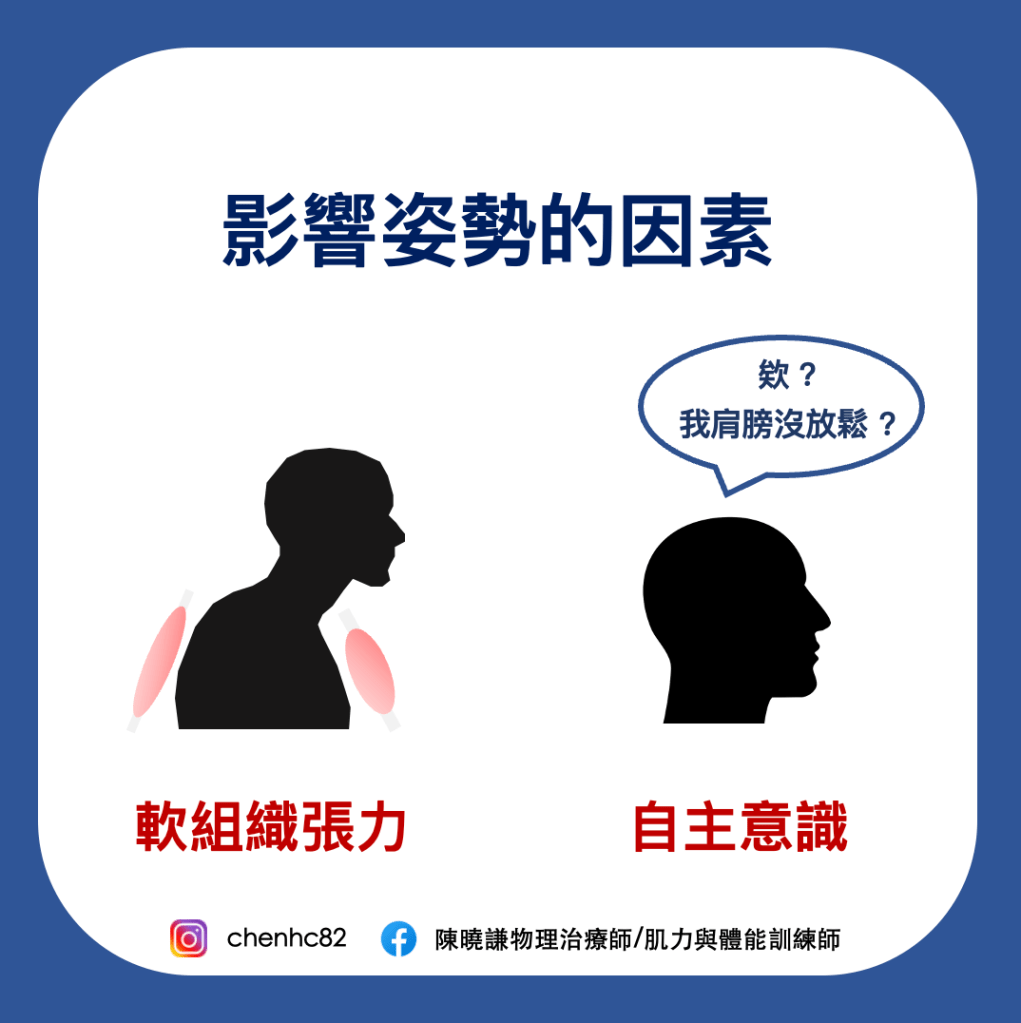 如前面所提,姿勢並非只有張力的影響,而是有「意識、動作學習、軟組織等因素」