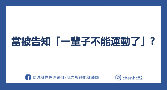 我常常開玩笑,我們這些人是得了「運動癌症」(意指:不運動就會死的人),聽到說「一輩子不能再運動、不能再打球了」,肯定會發瘋,但若醫療人員這樣跟你說,你可以思考的方向跟做些什麼: