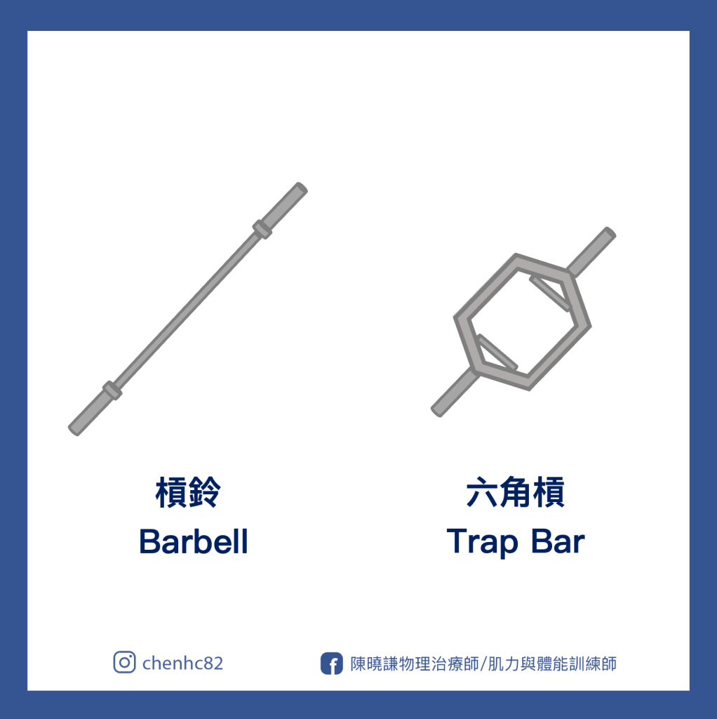 多數的健身房、運動中心都有槓鈴(Barbell),相較於啞鈴及壺鈴等,槓鈴的設計讓我們能將更多槓片裝上,對身體產生更大的負荷,進而刺激肌肉逐漸生長。而六角槓(Trap-bar or Hex-bar)則是一種特殊的槓鈴,設計成中間是空的,而握把在左右兩側,讓重量訓練的許多動作能更容易操作,而這當中又以「硬舉(deadlift)」最被廣為使用。